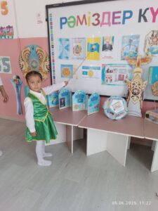 2025 жылдың 4 маусым күні балабақшада ересек топ тәрбиеленушілерімен «Рәміздер күні» тақырыбында тәрбие сағаты өткізілді. Бұл іс-шара Қазақстан Республикасының мемлекеттік рәміздеріне — Ту, Елтаңба және Әнұранға құрметпен қарауды қалыптастыру, балалардың патриоттық сезімін ояту, Отанға деген сүйіспеншілігін арттыру мақсатында ұйымдастырылды.