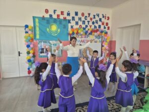 Шара барысында балабақша бүлдіршіндері патриоттық рухта безендірілген алаңға жиналып, Қазақстан Республикасының Мемлекеттік Әнұранын зор мақтанышпен орындады. Кішкентай жүректерінен шыққан әнұран үні әр жүрекке жетіп, балалардың отансүйгіштігін паш етті. Тәрбиешілер балаларға Мемлекеттік Ту, Елтаңба мен Әнұранның маңыздылығын түсіндіріп, әр рәміздің шығу тарихына тоқталып өтті.