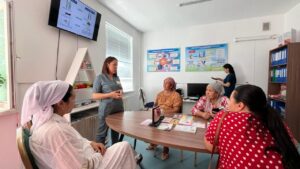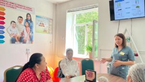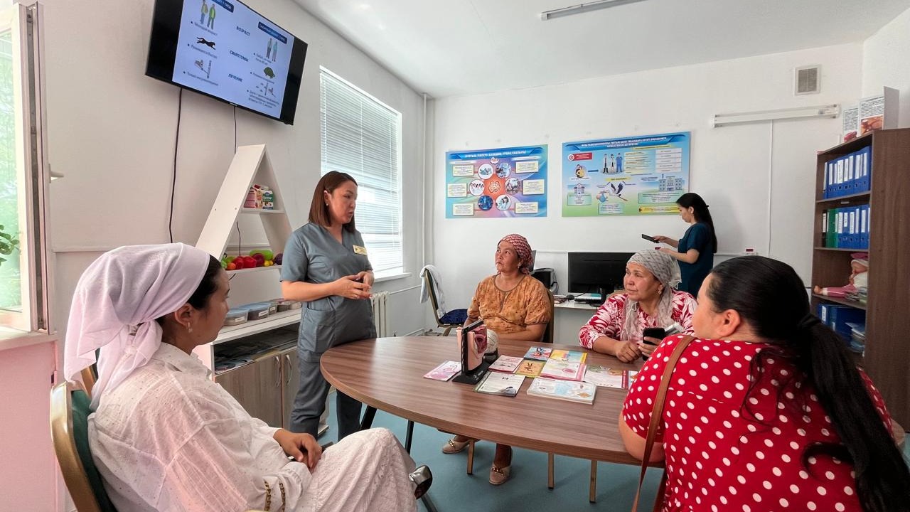 Эндокринолог дәрігер қант диабеті деген не екенін айтты. Пациенттер аурудың даму себептері және қандағы глюкоза деңгейінің, қан липидті бейінінің, қан қысымының мақсатты мәндері мен түрі туралы білудің маңыздылығы туралы білді.