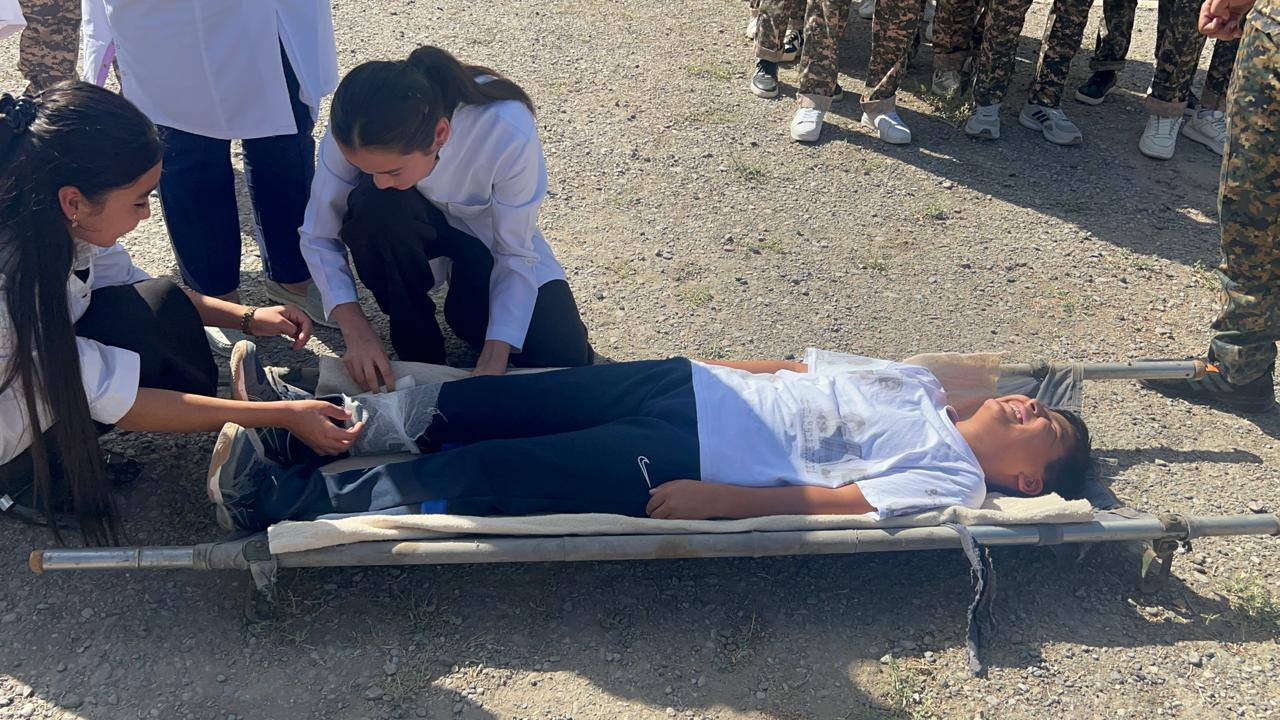 Практикалық сабақ барысында мектеп ауласында эвакуация жаттығулары өткізіледі. Арнайы белгі берілген кезде оқушылар белгіленген бағытпен қауіпсіз аймаққа шығуды үйренеді. Мұндай жаттығулар төтенше жағдай кезінде сабыр сақтап, өз өмірін және өзгелердің қауіпсіздігін қамтамасыз етуге көмектеседі.