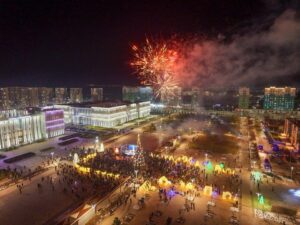 Жаңа жыл қарсаңында Түркістан ерекше сәнге еніп, қала тұрғындары мен қонақтарына шаттық пен жылулық сыйлады.