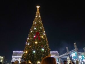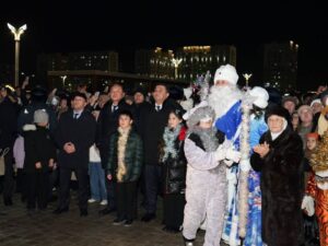 Әкімшілік-іскерлік орталық алаңында орнатылған бас шырша жарқырап, қалаға ерекше мерекелік көңіл-күй сыйлады.