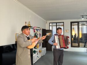 Аудандық мәдениет үйінің өнерпаздары әннен шашу шашып, көтеріңкі көңіл күй сыйлады.
